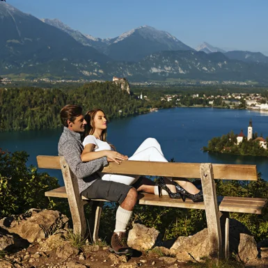 Mala and Velika Osojnica overlook the west side of the lake’s shore and offer a beautiful view of Lake Bled and its suroundings, the Karavanke mountains, the Kamnik-Savinja Alps, and Gorenja Ravan. They are also popular spots with photographers. Mala Osojnica (685 metres) is about a 45-minute walk away along a steep marked forest path, with another 20 minutes of hiking to get to Velika Osojnica (756 metres).