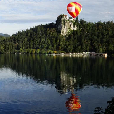 A hot air balloon ride overlooking the lake